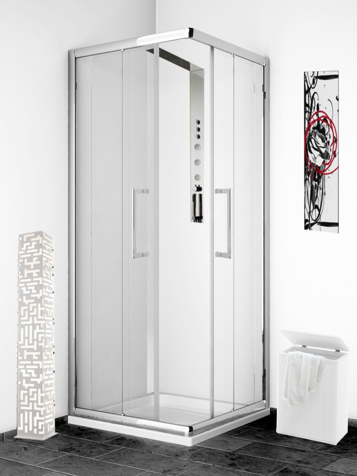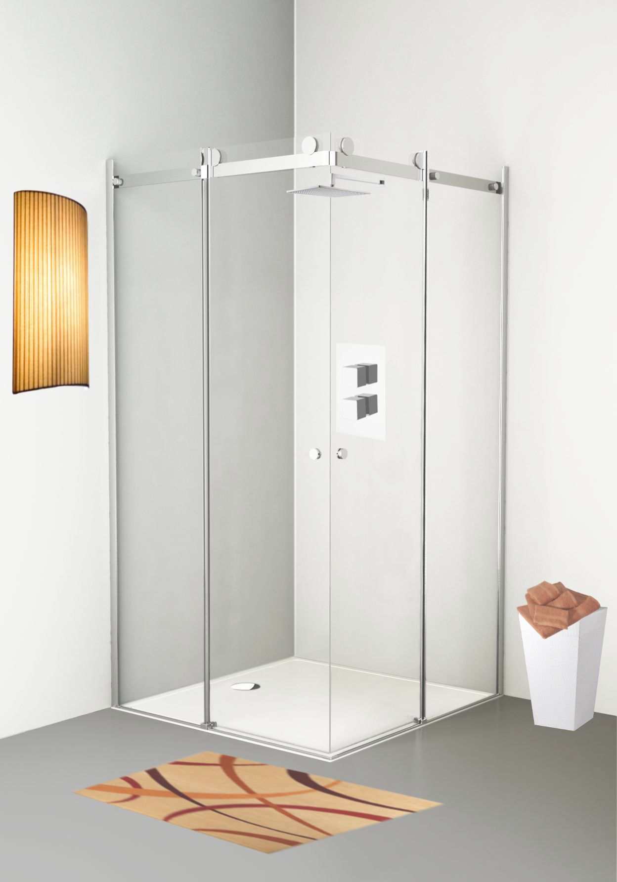 La realizzazione dei prodotti è altamente automatizzata e all’avanguardia; il taglio e la foratura vengono eseguiti da centri di lavoro altamente precisi la verniciatura viene effettuata con un impianto interno, la siliconatura con bracci robotizzati. La produzione viene seguita e curata in tutte le sue fasi da personale altamente qualificato. La produzione si basa essenzialmente su cristalli temprati di altissima qualità, perchè se è vero che il prezzo è importante, per noi la qualità viene prima di tutto. Tutti i cristalli, nei loro punti critici, vengono sottoposti allo sforzo di 50 kg in rispetto alla norma ISO 7892. Tutte le cabine vengono sottoposte automaticamente a 20.000 cicli di apertura e chiusura per testare la qualità delle ruote e/o delle cerniere. Inoltre tutte le cabine vengono sottoposte ad un duro test di ritenzione dell'acqua per testare il posizionamento e la qualità delle guarnizioni. Tutti i materiali impiegati, per concludere, devono resistere a diversi cicli di bagnatura e asciugatura, tutti questi requisiti sono stati certificati tramite TÜV.